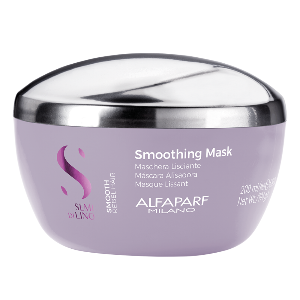 Maska Alfaparf Semi di Lino Smoothing Mask przeznaczona do włosów wymagających wygładzenia. Semi di Lino Smooth to linia opracowana specjalnie w celu kontrolowania niezdyscyplinowanych i trudnych włosów. Skutecznie je nawilża, wyrównuje włókna i przeciwdziała puszeniu się włosów spowodowanym wilgocią i czynnikami atmosferycznymi, przywracając włosom ich naturalne piękno. Odżywcza formuła zawiera kompleks stopniowo uwalniający substancję czynną, zapewniającą wyjątkowo długotrwały połysk. Jej zapach charakteryzuje się naturalnymi owocowo-kwiatowymi nutami i pozyskiwany jest z odnawialnych źródeł. W skład formuły wchodzą aktywne składniki Climate Proof oraz Frizz Defeat Protein, które chronią i naprawiają puszące się włosy, pozostawiając je miękkimi i zdyscyplinowanymi.