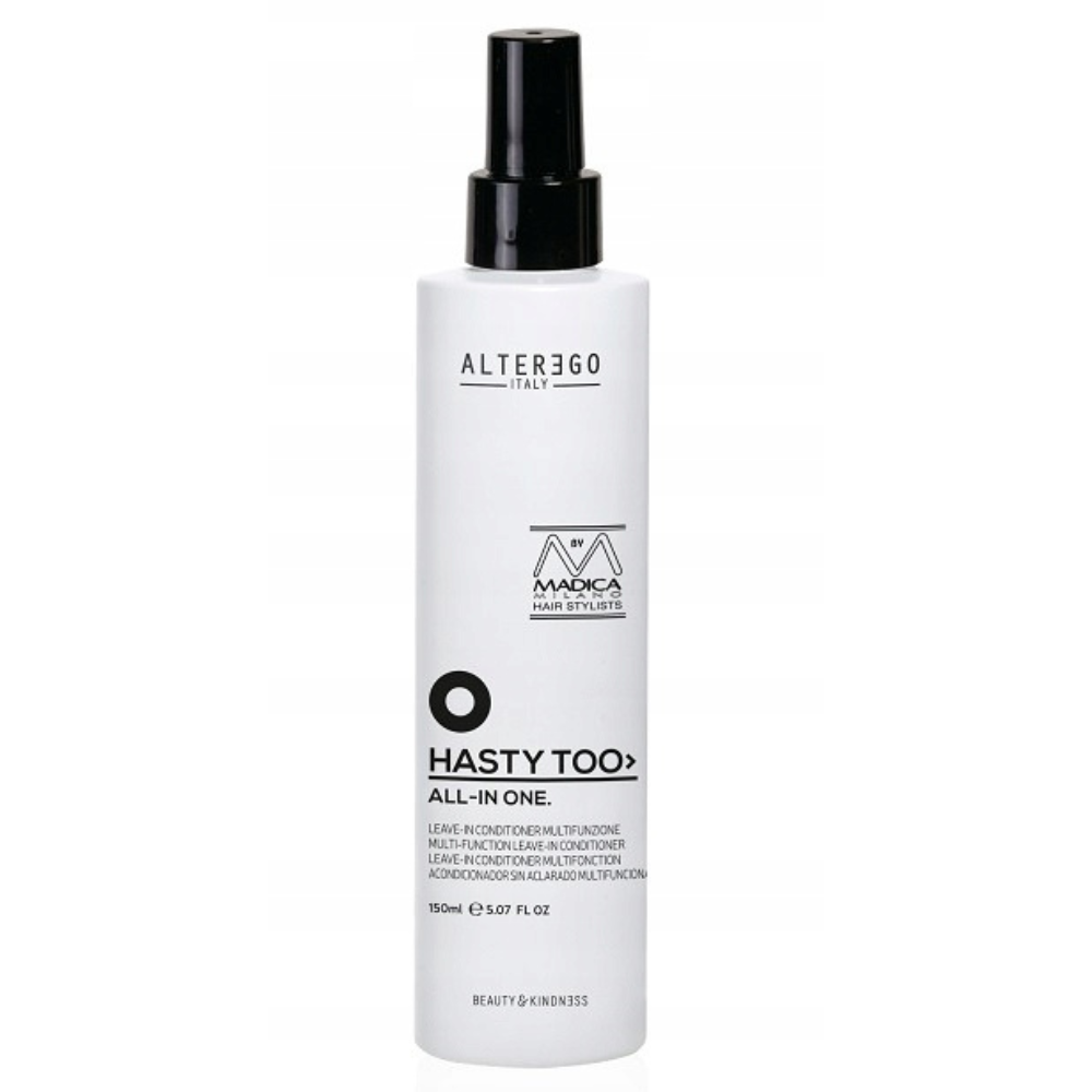 Alter Ego Hasty Too All-in-One Multifunctional Leave-in Conditioner to wielofunkcyjna odżywka bez spłukiwania, stworzona we współpracy z włoskimi stylistami z sieci salonów Madica Milano. Ta unikalna formuła w sprayu zapewnia kompleksową pielęgnację włosów, nadając im zdrowy wygląd i niezrównany blask.