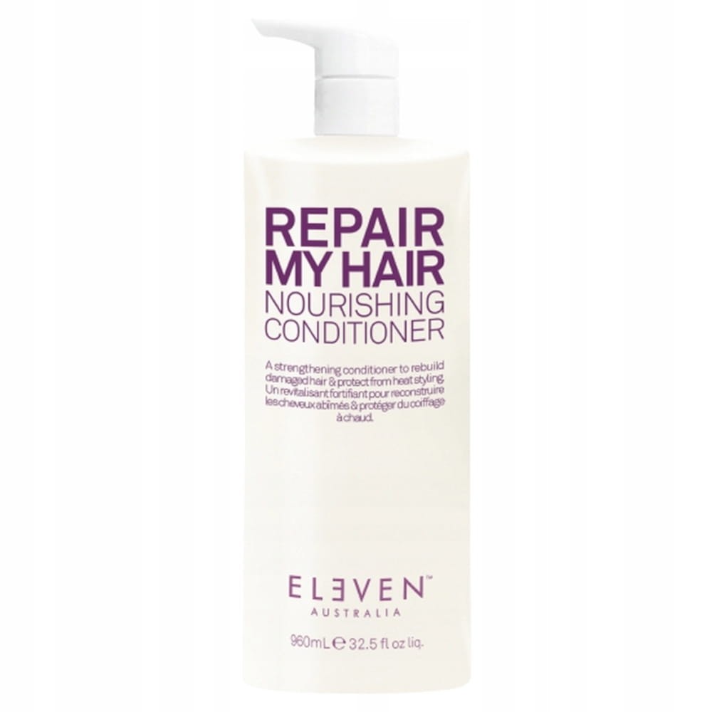 Odbudowująca i wzmacniająca odżywka Eleven Australia Repair My Hair Nourishing przeznaczona do pielęgnacji suchych i zniszczonych włosów. Odżywka zapewnia ochronę przed wysokimi temperaturami. Bogata formuła wzbogacona w ekstrakt z aloesu nawilża włosy. Zielona herbata wykazuje działanie antyoksydacyjne, oraz utrzymanie odpowiedniej kondycji skóry głowy. Aminokwasy pobudzają wzrost włosów, wzmacniając i odbudowując ich strukturę. Hydrolizowane proteiny ryżowe i izoflawony sojowe dbają o odbudowe wiązań we włosach.
