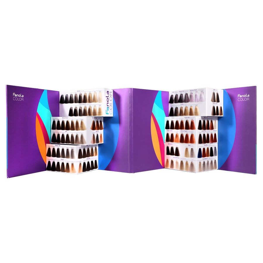 Profesjonalna paleta kolorów farb Fanola Color. Fanola Karta Kolorów to profesjonalny wzornik fryzjerski, który prezentuje pełną gamę 119 odcieni farb do włosów marki Fanola. To niezbędne narzędzie w każdym salonie fryzjerskim, umożliwiające stylistom dokładne dobieranie kolorów do indywidualnych potrzeb i oczekiwań klientek oraz klientów.