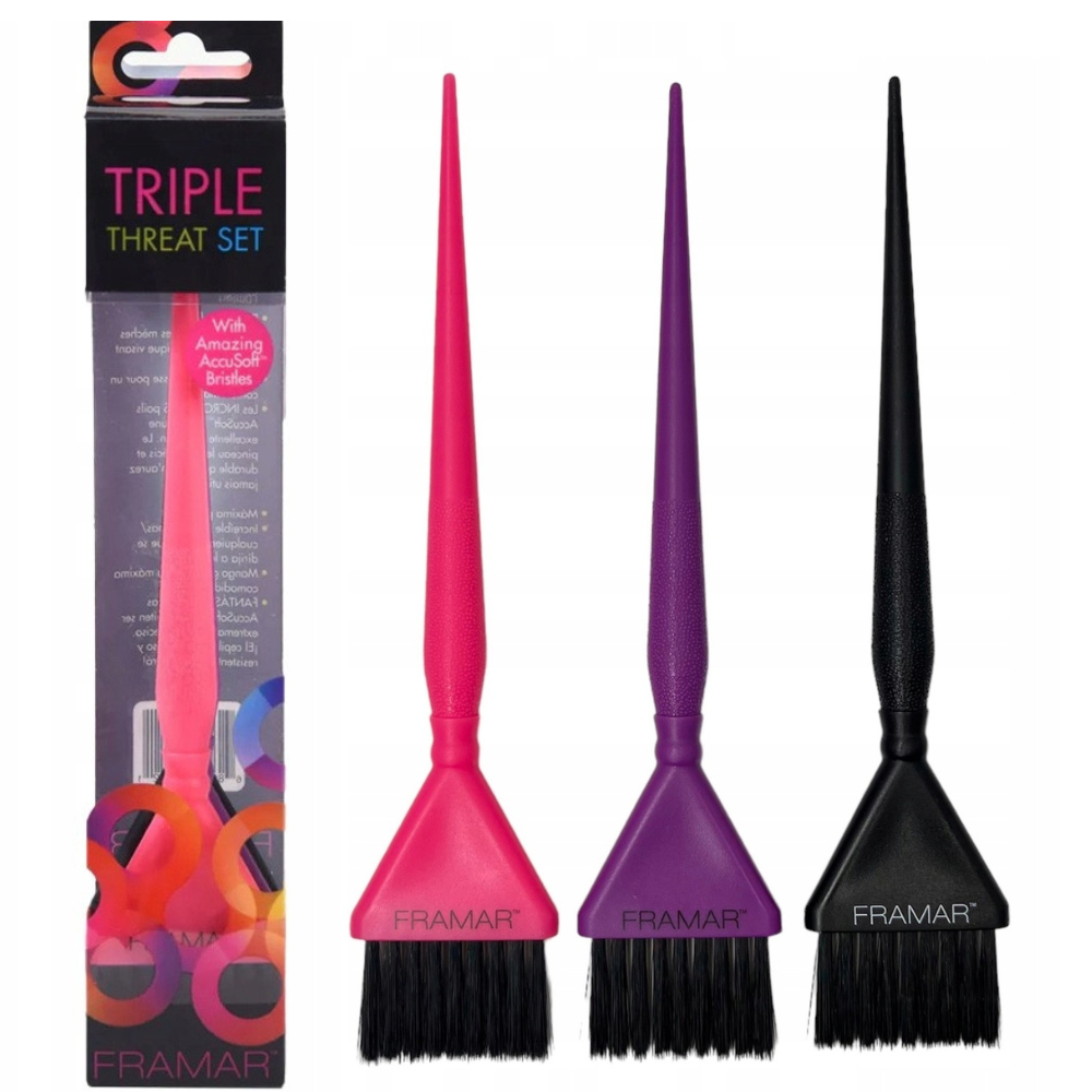 Zestaw pędzli do szybszej aplikacji farby na włosy. Dostępny w zestawie w kolorze czarnym, różowym i fioletowym. Idealny do każdego rodzaju koloryzacji. Zwężane krawędzie zapewniają najwyższą precyzję. Włosie AccuSoft - idealne połączenie miękkiego i sztywnego włosia, zapewniające fryzjerom optymalną kontrolę.