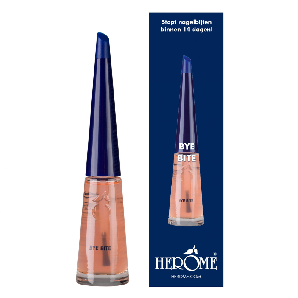 Herome Bye Bite to preparat przeciw obgryzaniu paznokci o gorzkim i nieprzyjemnym smaku, który skutecznie zniechęca przed wkładaniem palców do ust. Preparat bardzo długo utrzymuje się na dłoniach, nawet po umyciu rąk, czy kąpieli, co oznacza, że będzie spełniał swoje zadanie w każdych warunkach. Produkt ponadto działa jak odżywka, dzięki czemu stymuluje wzrost długich, ładnych i zdrowych paznokci.