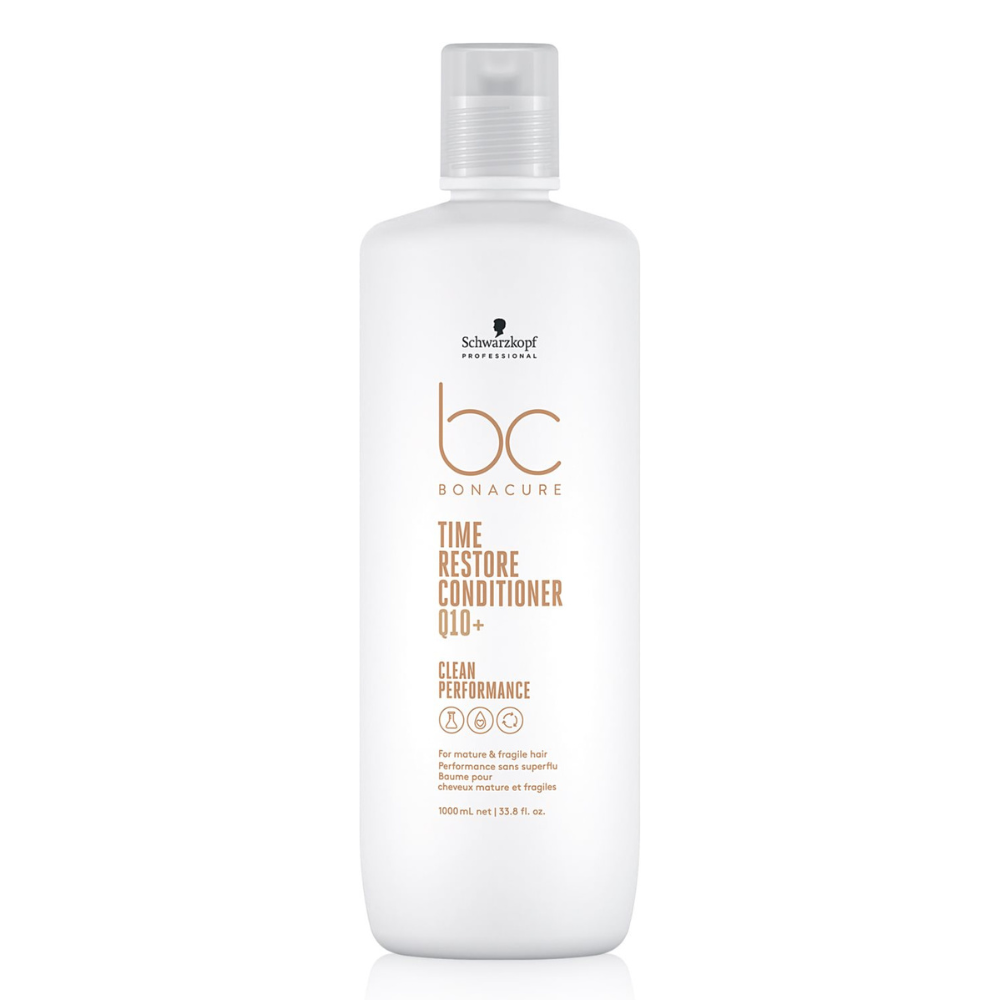 Odżywka Schwarzkopf Professional BC Bonacure Time Restore przeznaczona do włosów dojrzałych i kruchych. Formuła wzbogacona w glinkę, która bogata jest w kompleks Q10, stymuluje cebulki włosów do wzrostu. Keratyna wnika w stukryty włosa, wypełniając jego ubytki. Odżywka zapewnia intensywną pielęgnację włosom dojrzałym. Formuła produktu pomaga zlikwidować widoczne oznaki starzenia się włosów błyskawicznie nadając włosom siłę i witalność Pasma są nawilżone, odbudowane, miękkie i bardziej podatne na układanie. Do tego maska dzięki zawartości pantenolu przywraca blask matowym włosom. Kosmetyki z serii Bonacure, są w 100 % wegańskie, oraz zostały wykonane w 97% z przetworzonego plastiku.